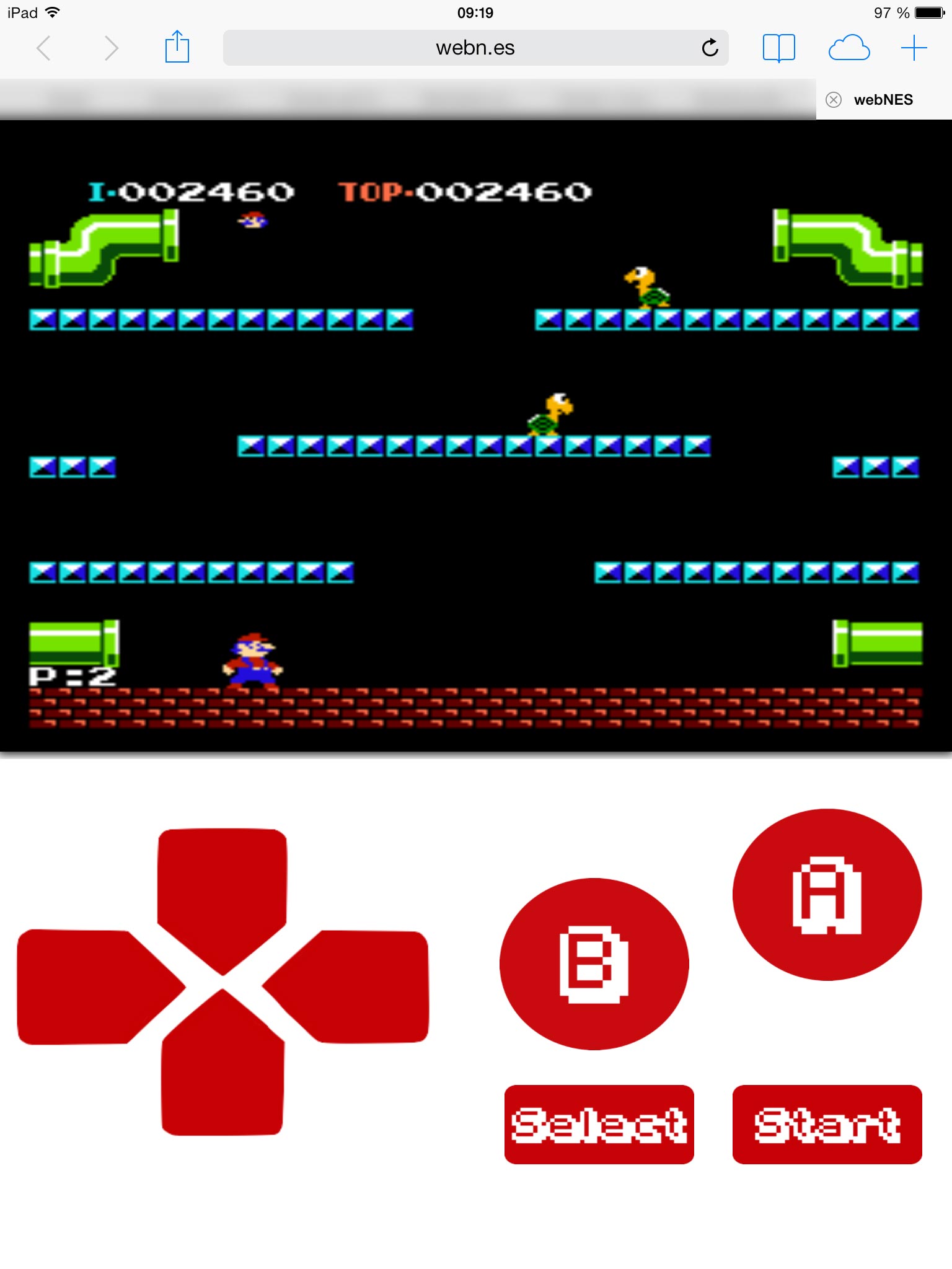 Cette solution s’appelle webNES, et elle fonctionne avec Dropbox. Le principe est simple, placez une rom NES dans votre dossier Dropbox, puis ouvrez le site webn.es dans Safari, ensuite il ne vous reste plus qu’à cliquer sur le « + » en haut à droite pour aller récupérer votre rom. Celle-ci s’ajoute aux autres déjà présentes par défaut, un simple clic dessus l’ouvrira et le jeu commencera directement. J’ai testé webNES sur mon iPhone 4 sans résultat, sur un 4s avec quelques bugs, et sur un iPad Air avec de très bons résultats.