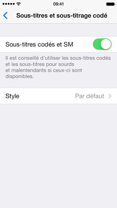 Pour activer les sous-titres, rendez-vous dans Réglages >> Général >> Accessibilité >> Sous-titres et sous-titrage codé. Bien entendu, les vidéos doivent être compatibles pour que cela fonctionne, mais ce que je veux vous montrer ici c’est la personnalisation.
