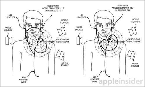 Un brevet signé de la firme pommée décrit un système composé d‘un accéléromètre et de deux microphones supplémentaires qui serait chargés respectivement de détecter les mouvements de la parole et de l’atténuation du bruit ambiant. L’ensemble permettrait à l’utilisateur de faire appel à Siri par exemple. Pour rappel, notre assistant vocal est déjà accessible via un appui prolongé sur le bouton du kit piéton.