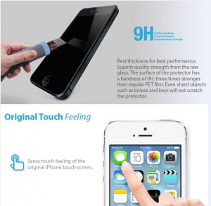 La protection en verre trempé d’aujourd’hui est la protection ultime pour votre iPhone 5/5S car elle protège votre téléphone grace à une très fine couche en verre trempé de 0,33 mm ultra résistante. Cette dernière est 9x plus résistante que la vitre de base de l’iPhone, et est anti-rayures, anti-bactérien, et anti-projection d’éclats.