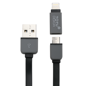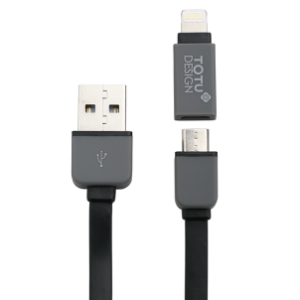 Câble Plat de Recharge et Synchronisation 2 en 1 TOTU Perfect Buddy (Micro USB et Apple Lightning)(Noir/Argent) (24,95€ -> 12,45€)