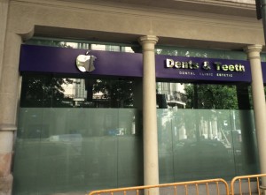 La ressemblance du « logo » est assez flagrante, même si les entailles dans la pomme sont différentes ! Pour information, cette clinique dentaire se situe à Barcelone (Espagne).