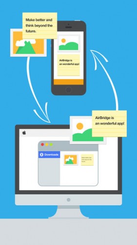 AirBrodge vous permettra de transférer des images ou du texte entre votre ordinateur et votre iPhone (l’application AirBridge doit également être installée sur votre ordinateur). Télécharger gratuitement AirBridge.