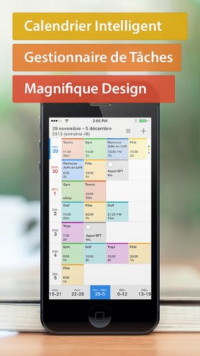 Calendar 5 vous permet d’afficher vos tâches dans le calendrier, sur les différentes vues. Vous pouvez synchroniser vos tâches avec Rappel et/ou Google Task, comme vous pouvez synchroniser vos événements avec le calendrier iOS et/ou Google Cal. Noté 4,5/5 pour 235 avis. Télécharger gratuitement Calendars 5.