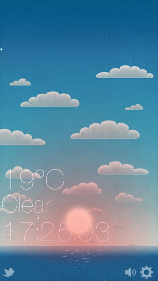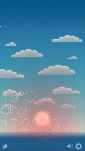 Soaring est une application météo unique, simple, et superbement réalisée affichant l’heure, la température et la météo locale dans un ciel virtuel élégant, tout en utilisant la position GPS et l’heure actuelle pour déterminer la position du soleil et de la lune. Basculez entre degrés Fahrenheit et Celsius, et tweetez les conditions météorologiques de votre emplacement directement depuis l’application. Noté 4/5 pour 20 avis. Télécharger gratuitement Soaring.