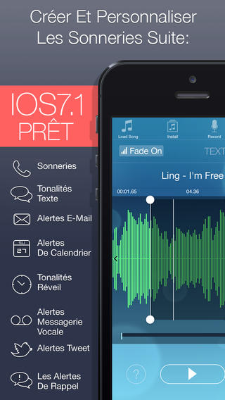 Créer un nombre illimité de sonneries ou d’alertes pour personnaliser votre iPhone avec cette application simple d’utilisation. Noté 4/5 pour 123 avis. Télécharger gratuitement Sonneries pour iOS 7.