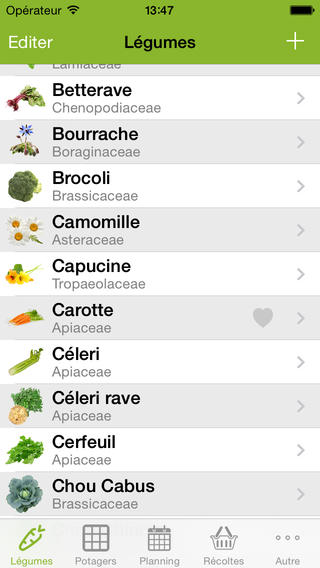 Une application très complète qui vous assistera dans la gestion de votre potager, grâce à des outils de planification, et surtout grâce à des informations très détaillées sur plus de 55 fruits et légumes. Noté 3,5/5 pour 233 avis. Télécharger gratuitement Mon Potager.