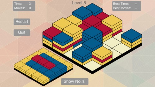 un jeu de construction de blocs colorés. Dans le coin inférieur gauche, un modèle est donné pour chaque niveau. Reproduisez-le à l’identique le plus rapidement possible et en faisant un minimum de mouvements pour gagner un maximum de points. Noté 4/5 pour 6 avis. Télécharger gratuitement Color Tower.