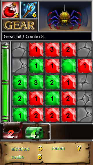 Jeu de réflexion de type démineur dans lequel vous possédez deux sortes de magie : la rouge et la verte. Cliquez sur une case avec une des deux magies pour connaitre le nombre de cases adjacentes de la même couleurs. Télécharger gratuitement Cavesweeper.