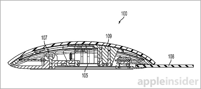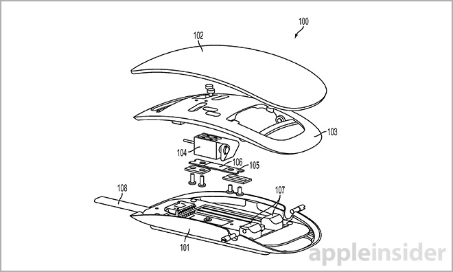 Employant le design familier de la souris Apple avec une seule grande partie supérieure faisant office de bouton, l’accessoire est capable de transférer avec précision la force exercée sur le capteur, la souris peut donc estimer la quantité de force appliquée par l’utilisateur et générer un signal de commande en conséquence (effectuer une action différente en fonction de la force du clic). Pour ce qui est du retour haptique, un électro-aimant est disposé dans le corps de la souris de telle sorte qu’il frappe la partie supérieure du bouton lorsqu’il est activé. Les moteurs de vibration intégrés (ou autres systèmes haptiques) sont placés dans une ou plusieurs positions de manière à fournir des niveaux adéquats de retour. La demande de brevet pour cette souris capable de détecter la force a été déposée pour la première fois en 2013 et attribue l’invention à James E. Wright et Keith J. Hendren.