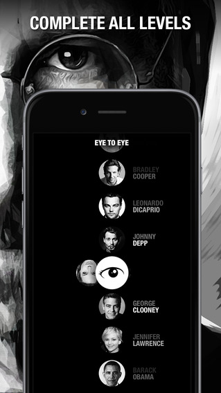 Un quiz dans lequel vous devrez reconnaitre les personnes connues qui se cachent juste en voyant leurs yeux. Terminez tous les niveaux et tournez la roue de la fortune pour une chance de gagner plus de vies. Noté 4,5/5 pour 125 avis. Télécharger gratuitement Eye to Eye.