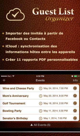 Guest List Organizer est une solution tout-en-un pour l’organisation de vos événements. Il vous suffit d’importer des contacts à partir de Facebook ou de votre carnet d’adresses et de vous laisser guider. Noté 5/5 pour 5 avis. Télécharger gratuitement Guest List Organizer.