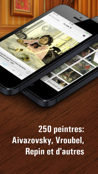 L’application contient 1487 travaux de 250 grands peintres russes – Aïvazovski, Chichkine, Savrassov, Repine, Levitan, Vroubel, Roerich, Sourikov, Vassiliev et plusieurs autres. Noté 4,5/5 pour 6 avis. Télécharger gratuitement Peinture russe HD.