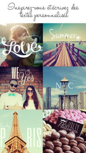 Typic est une application pour embellir vos photos à l’aide de textes personnalisés. Vous pourrez appliquer des effets/filtres et paramétrer très finement l’ajout de textes en choisissant la taille, la couleur, la police, parmi un choix très vaste. Noté 4,5/5 pour 73 avis. Télécharger gratuitement Typic+.