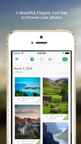 PhotosPro vous permet de parcourir, de partager et de gérer vos photos et vidéos sur votre iDevice, sans effort. Répertoriez vos photos sur une carte, et rappelez-vous de tous les endroits que vous avez visités ! Trouvez facilement des photos, des vidéos ou des captures d’écran en fonction des dates, des saisons ou les vacances en quelques clics. Enfin, créez des collages directement depuis l’application et partagez vos albums sur les réseaux sociaux ou par e-mail. Noté 4/5 pour 40 avis. Télécharger gratuitement PhotosPro.