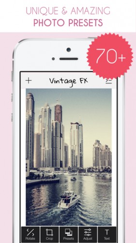 Ajoutez différents effets ajustables et du texte à vos photos pour obtenir un style vintage. Plus de 80 effets sont à disposition ainsi que des options de partage qui prennent en compte le format requis (comme le carré pour Instagram par exemple). Télécharger gratuitement Vintage FX.