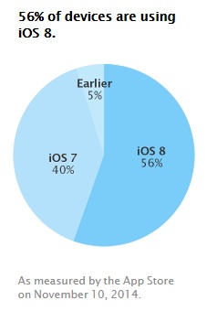 Avec 56% des iDevices en circulation, iOS 8 se taille la part du lion