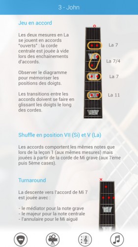 Cette application qui sert à apprendre le blues à la guitare présente 8 morceaux de niveaux progressifs dans la même tonalité de Mi. Niveau : 6 mois de guitare minimum. Noté 3,5/5 pour 63 avis. Télécharger gratuitement E-Blues : Le blues à 12 mesures à la guitare.