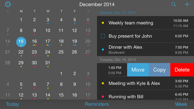 Application de calendrier et de rappels bien pensée et joliment réalisée qui vous offre une vue sur deux semaines. Une des fonctions qui peut s’avérer bien pratique est le déplacement d’un évènement. Télécharger gratuitement OnTop.