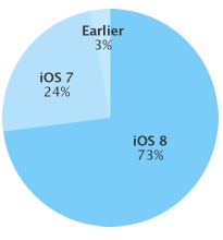 iOS 8 retrouve ses vieux démons ! Alors que le système d’exploitation mobile fait tourner plus de 70% des iDevices depuis le 2 février grâce à une progression de trois points, le dernier sondage rappelle que iOS 8 a encore du mal à séduire les utilisateurs d’appareils Apple. Cette fois, un petit point permet au taux d’adoption du système de passer à 73% des iPhone et iPad. Vivement iOS 9 !