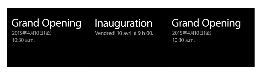 C’est une annonce digne d’une keynote. Sobre et sans fioritures. Sur le site d’Apple, un carré noir, en trois exemplaires, avec ces mots « Inauguration vendredi 10 avril à 9h00. » La même invitation se retrouve en anglais et en idéogrammes japonais et évoque un événement prévu respectivement à Londres et à Tokyo. En fait, Apple va ouvrir dans ces trois villes un magasin spécialement dédié à son Apple Watch. Appelée tout simplement « Apple Watch », sans rajouter la mention « store » que l’on aurait pu attendre, la surface parisienne sera installée aux Galeries Lafayette. Ce n’est donc pas un nouvel Apple Store qui s’implante dans l’Hexagone mais bien un magasin dédié à la montre connectée qui se met en place Boulevard Haussmann.