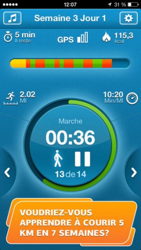 Développé par des entraîneurs, le programme d’entraînements par intervalles vous permettra d’atteindre l’objectif de 5 km en 7 semaines. Le programme est conçu de telle sorte que la charge augmente progressivement en vous permettant de vous adapter au stress. Seulement trois séances d’entraînement de 30 minutes par semaine et vous pourrez courir 5 km sans interruption. Noté 4/5 pour 42 avis. Télécharger gratuitement Entraîneur pour courir 5 km PRO.