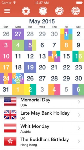 Soyez au courant quotidiennement des vacances ou jours fériés/spéciaux de 42 pays grâce à ce calendrier bien réalisé, affichant chaque jour l’évènement d’un des pays. Recherchez même en étant déconnecté de tout réseau, cliquez sur une fête pour en savoir plus grâce à Wikipédia, et synchronisez ou importez les vacances et évènements dans votre calendrier iOS. Télécharger gratuitement World Calendar.