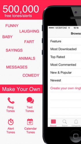 Plus de 500 000 sonneries sont mises à votre disposition gratuitement via cette app. Cherchez les sonneries en naviguant par catégories ou alors créez vos propres sonneries. Télécharger gratuitement Ringtone Pro.