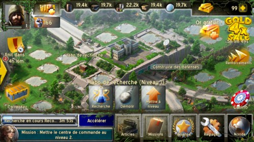 Vous débuterez votre partie par un tutoriel qui vous permettra de mettre la main sur le jeu et d’en connaitre ainsi les bases. Il vous faudra commencer par la construction de votre base et de vos défenses pour faire face aux attaques des infectés mais également celles des autres joueurs.