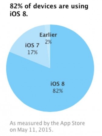 Le compte à rebours est lancé pour l’avènement de iOS 9 et c’est maintenant que iOS 8 décide de s’imposer sur la quasi-totalité des iDevices en circulation. Selon le dernier décompte réalisé par Apple le 11 mai, 82% des appareils mobiles tournent sous iOS 8, deux points de plus que lors du précédent sondage il y a deux semaines. La différence se fait toujours avec son prédécesseur iOS 7.