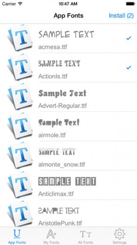 Très bonne appli qui vous permet d’installer des polices d’écriture en .ttf ou .otf que vous pourrez ensuite utiliser dans d’autres application de votre iPhone. Télécharger gratuitement InstaFont.