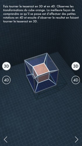 La quatrième dimension est un livre interactif de 30 pages qui explique une seule idée mathématique dans un langage accessible à tout le monde. Au lieu d’utiliser des images statiques ou des vidéos toutes faites, cette application dispose d’une unique interface tactile en 3D qui vous permet de comprendre littéralement le concept de la quatrième dimension de vos propres mains. Noté 4,5/5 pour 9 avis. Télécharger gratuitement La quatrième dimension.