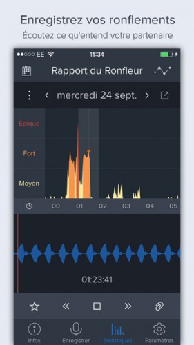 Enregistrez, mesurez et réduisez vos ronflements grâce à cette application d’analyse des ronflements pour iPhone. L’app procède à l’analyse des ondes sonores pour mesurer et enregistrer vos ronflements, vous permettant de découvrir des méthodes efficaces pour les réduire. Noté 4/5 pour 186 avis. Télécharger gratuitement iRonfle.