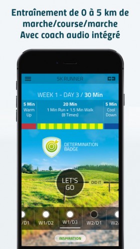 Participez à un entrainement complet pour vous permettre d’arriver à courir 5 kilomètres de suite sans repos. Le programme améliore votre forme en alternant entre la course et la marche, 3 fois par semaine pendant 8 semaines. Après seulement 8 semaines, vous aurez facilement réussi à courir 5 km et vous serez en meilleure forme, en meilleure santé et plus fort(e) que jamais. L’appli est compatible Apple Watch. Noté 4,5/5 pour 129 avis. Télécharger gratuitement 5K runner.