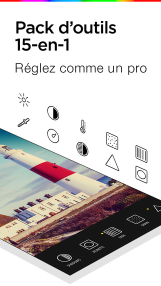 Explorez les collections de filtres, d’effets et d’outils personnalisés et dévoilez votre créativité afin d’obtenir des photos 100 % originales. Une bonne partie des achats intégrés sont gratuits (au moins 10), parmi eux, on peut se procurer par exemple les packs “Nature”, “ArtDeco Frames”, “Springtime”, “Filters for portraits” et bien d’autres. Noté 4,5/5 pour 51 avis. Télécharger gratuitement Filterra.