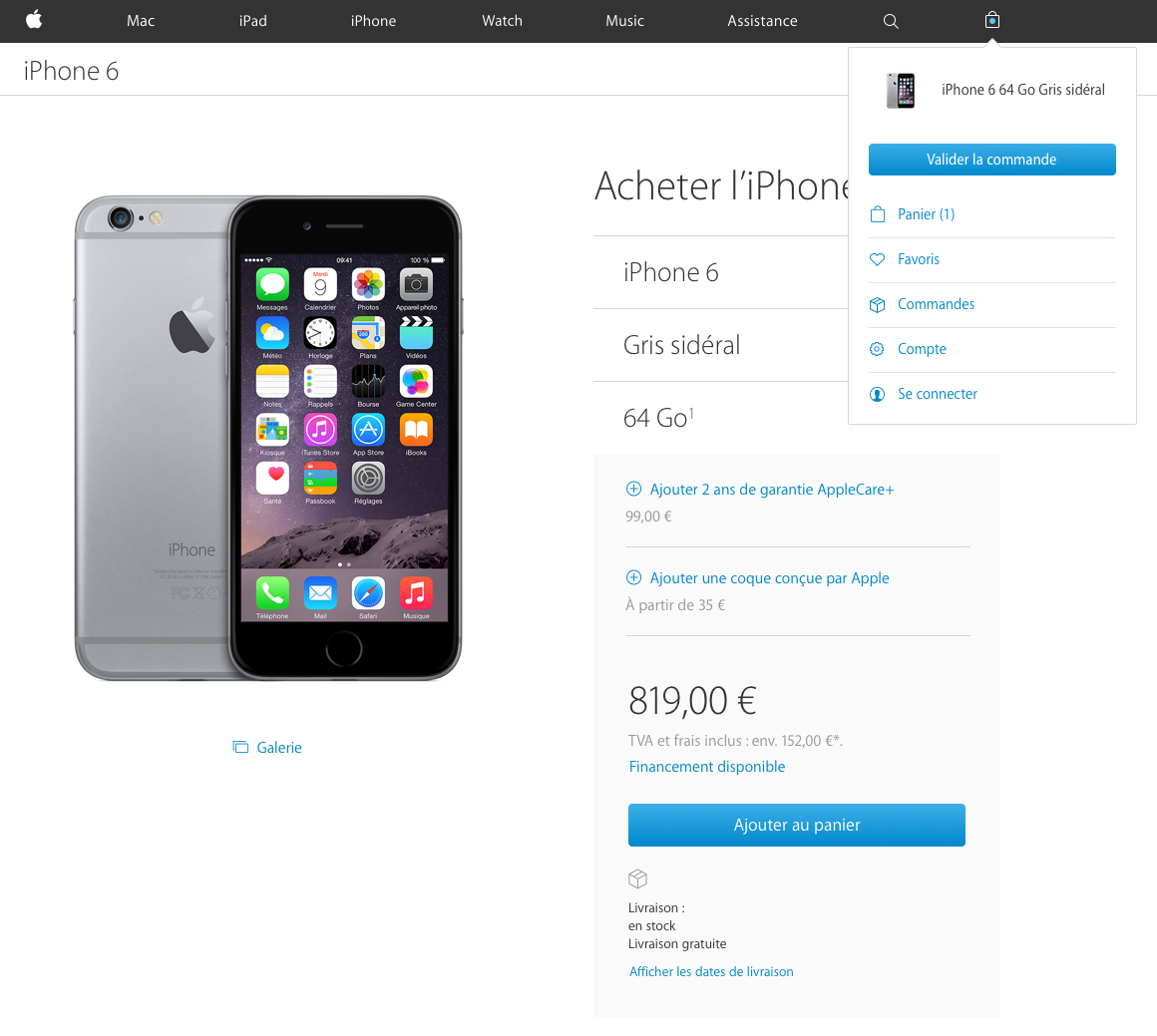 Si vous visitez aujourd’hui le site apple.com, vous pourrez remarquer que l’onglet « Store » n’apparait plus dans le menu. On peut par contre noter qu’un nouveau bouton est apparu sur la droite, il s’agit de l’accès au panier.