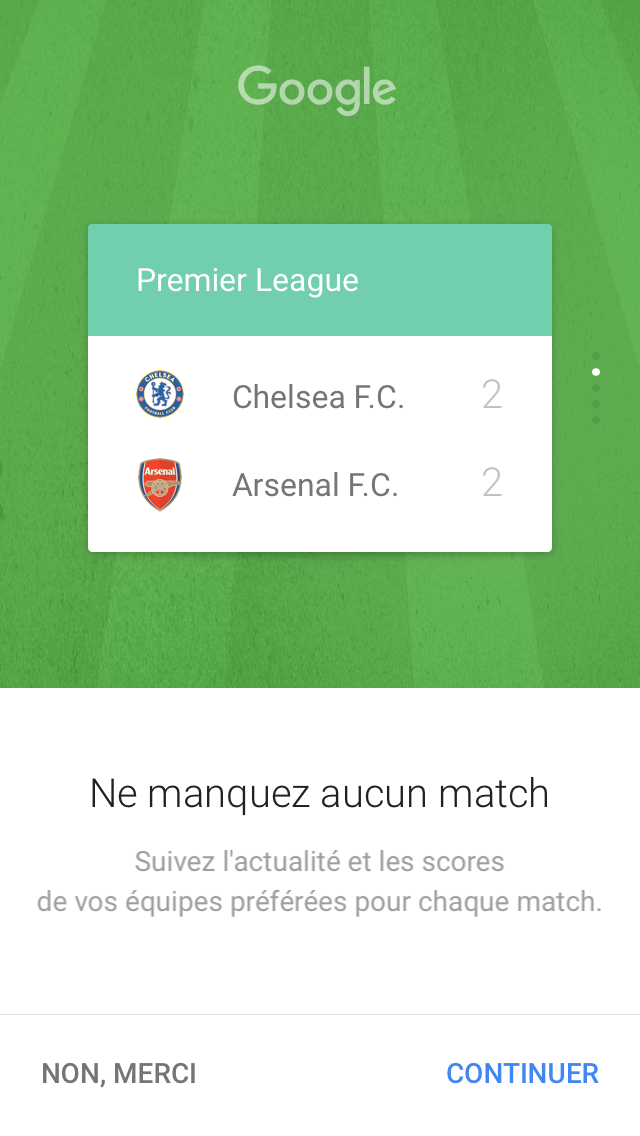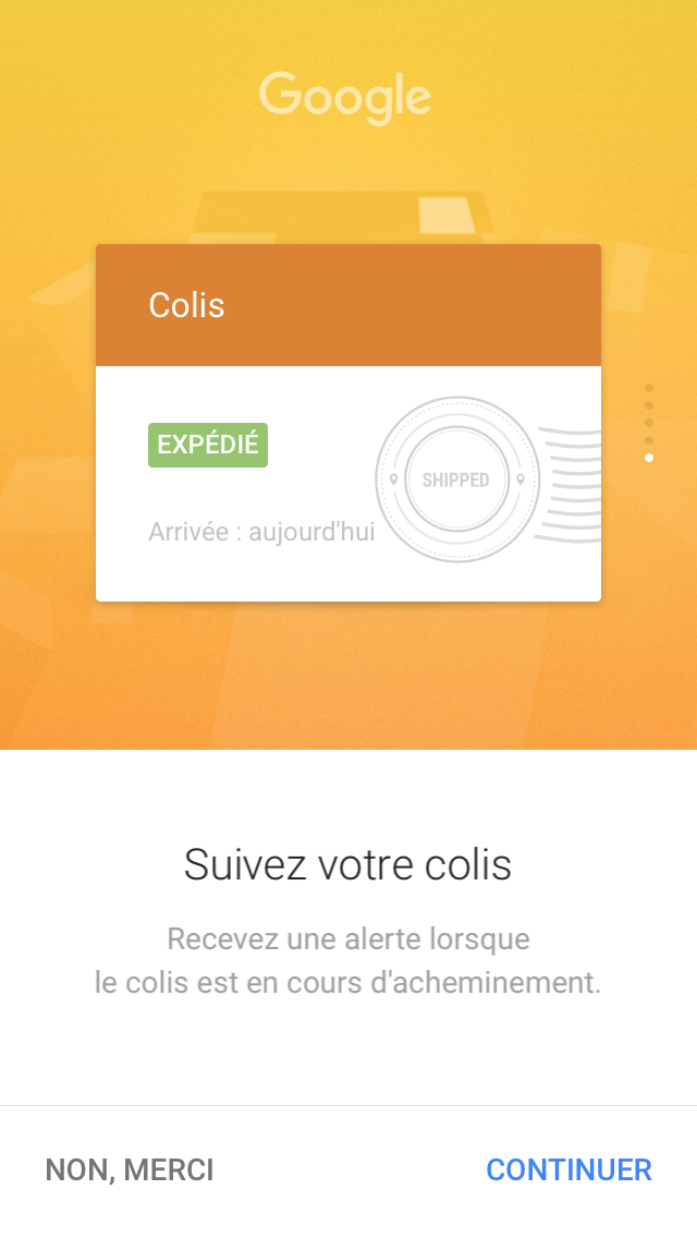 Google Now, si vous y souscrivez, offre un système de cartes, qui vous notifient de diverses informations telles que la météo, les résultats de votre équipe de sport favorite, l’état du trafic routier sur vos trajets quotidiens, les informations relatives à votre prochain vol ou encore un suivi de colis.