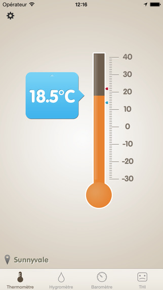 Thermo-hygromètre est une application météo, en utilisant l’emplacement GPS. Affiche la température extérieure, l’humidité, la pression atmosphérique et de THI emplacement actuel. Compatible iPhone, iPod touch et iPad
