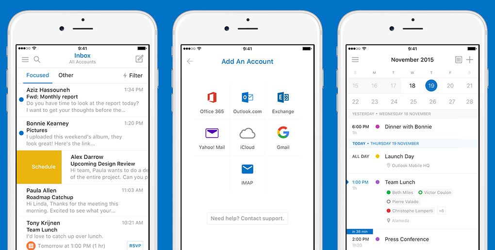 L’app de gestion de comptes e-mail et de calendrier de Microsoft, Outlook passe en version 2.0 sur iOS d’Apple et gagne pas mal de nouvelles fonctionnalités, de même qu’une nouvelle interface mais surtout, un compagnon pour l’Apple Watch, la montre connectée pommée.