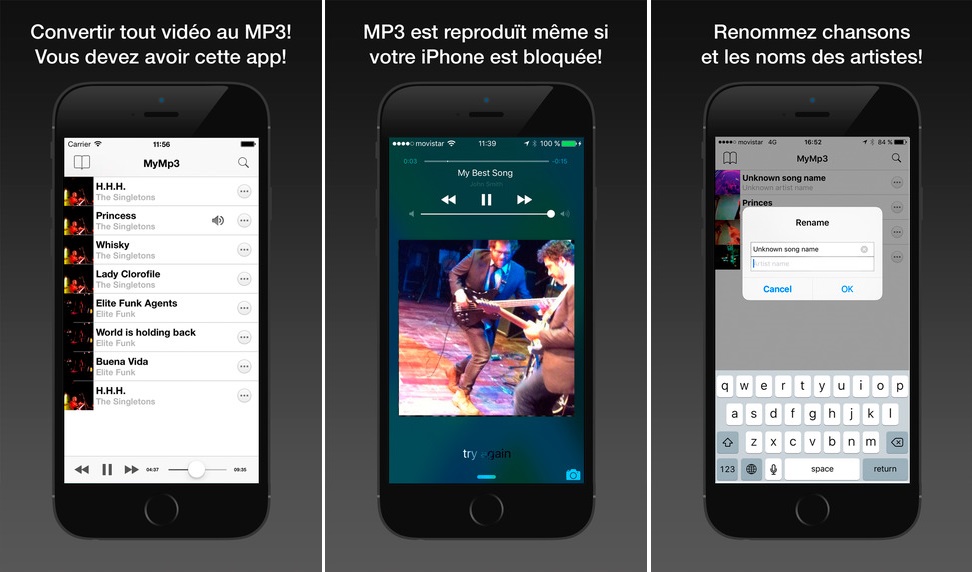 Compatible iPhone, iPad et iPod touch, MyMP3 est téléchargeable sur l’App Store et ne propose que l’essentiel !