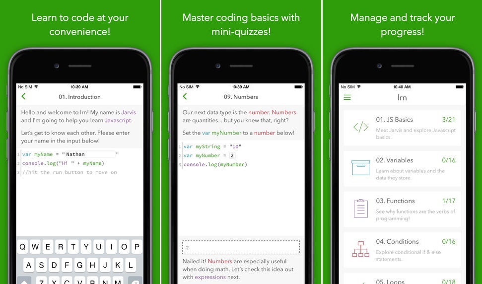 Développée par Lrn Labs, Lrn est une application qui vous permet d’apprendre le codage logiciel pas à pas, au travers de leçons bien documentées et bien structurées et un peu plus de 300 quizz facilitant la révision ! Si elle est plutôt rudimentaire, elle aura tout de même le mérite de vous ouvrir les portes de la compréhension du codage en quelques heures de boulot.