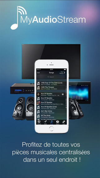 Faîtes jouer votre musique en streaming depuis divers appareils tels que votre Xbox, votre PS3, votre télévision ou d’autres appareils compatibles. Une version spéciale iPad est disponible. Compatible iPhone, iPod touch et iPad