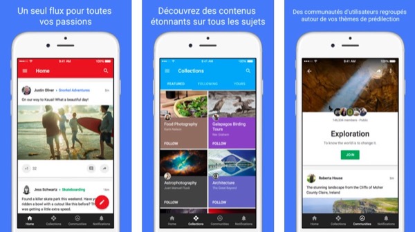 Google+ introduit lui aussi une nouvelle interface par le biais de sa version 5.0, qui met en avant ses sections clé : Communautés et Collections. De plus, un peu à l’image de Twitter, il devient plus facile sur G+ de passer d’un compte à l’autre et de partager ses posts et favoris.