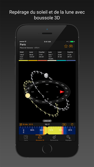 Prenez connaissance de l’emplacement précis du soleil et de la lune à tout moment, jour et nuit. Compatible iPhone, iPod touch, iPad et Apple Watch