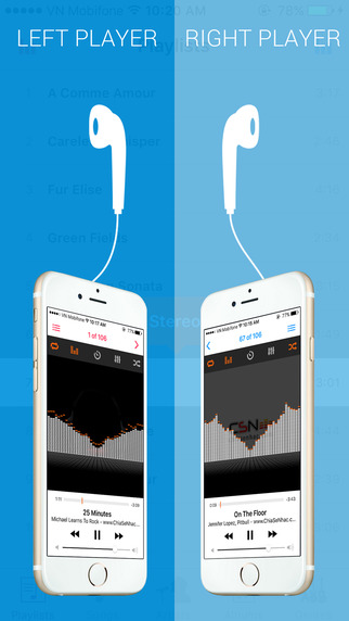 Écoutez une musique différente pour chacun de vos écouteurs, pratique si vous les partagez avec quelqu’un qui n’a pas les même goût musicaux, ou si vous avez besoin d’effectuer une comparaison entre 2 enregistrements sonores. Compatible iPhone, iPod touch et iPad