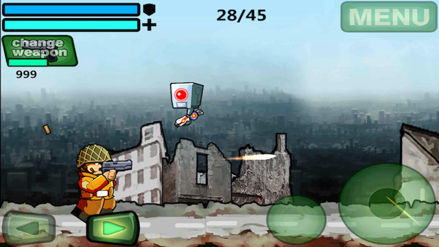 Un jeu de tirs en 2D cartoonesque avec une progression linéaire dans lequel vous incarnez un soldat qui doit se débarrasser de robots particulièrement agressifs. Compatible iPhone, iPod touch et iPad