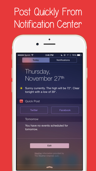 Quick Post vous propose un widget qui vous permet de poster rapidement sur Twitter ou Facebook. Compatible iPhone, iPod touch et iPad