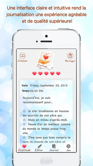 Positivez en tenant un « journal de gratitude », il vous permettra de retenir les choses positives qui vous arrivent au quotidien. Compatible iPhone et iPod touch