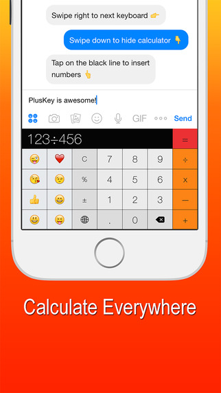Un clavier qui vous propose une calculatrice vous permettant d’effectuer rapidement des calculs sans quitter votre application de messagerie. Compatible iPhone, iPod touch et iPad