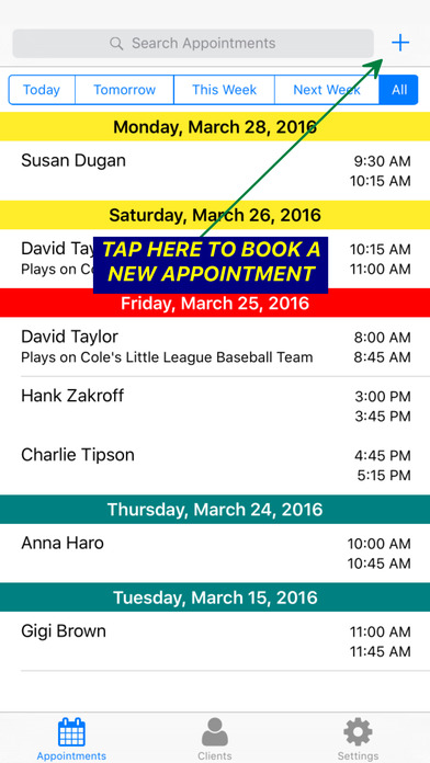Gérez tous vos rendez-vous avec Rendezvous Appointment Book. Nécessite iOS 9.0 ou une version ultérieure. Compatible avec l’iPhone, l’iPad et l’iPod touch.